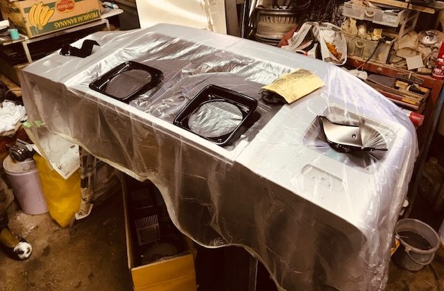 今回のお客様は北海道でも雪深い美深町という所で吹雪で前が見えなくなるホワイトアウト現象がおこりやすい地域ですのでお客様のご要望でフォグランプを埋め込むようにフロントバンパーを加工しました。